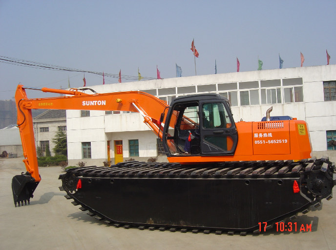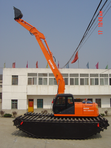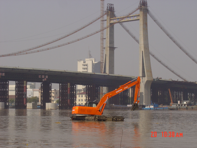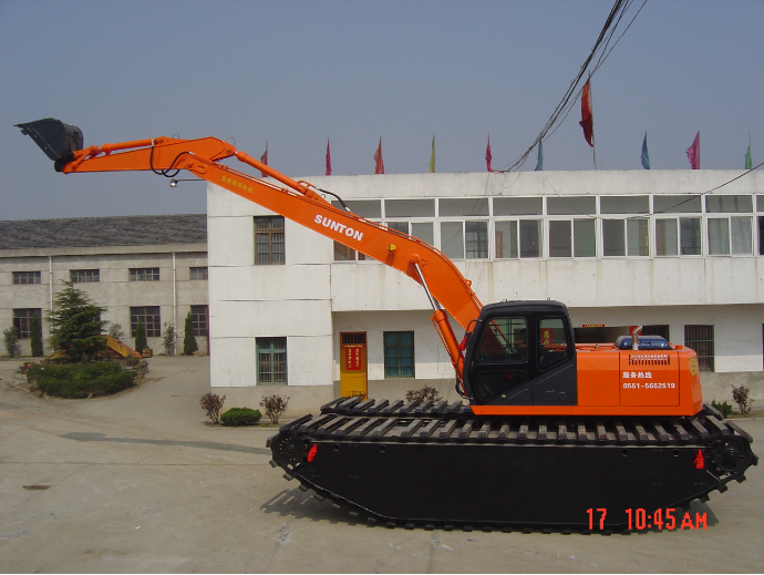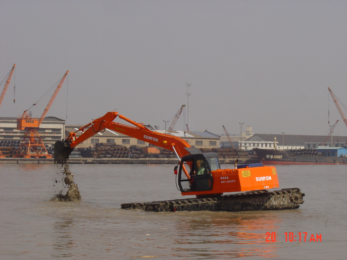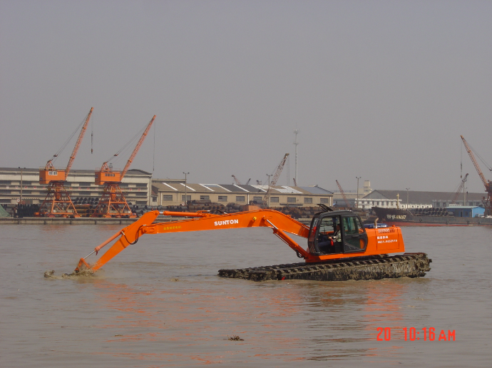- 可在水深1米以內(nèi)的河道與海灘中作業(yè)。超過(guò)1米水深的作業(yè)環(huán)境,可根據(jù)客戶要求進(jìn)行特別設(shè)計(jì)及制造。產(chǎn)品對(duì)特種作業(yè)環(huán)境的適應(yīng)能力,其他類型的挖掘機(jī)無(wú)法替代,被海內(nèi)外客戶譽(yù)為“水中挖掘之王”。